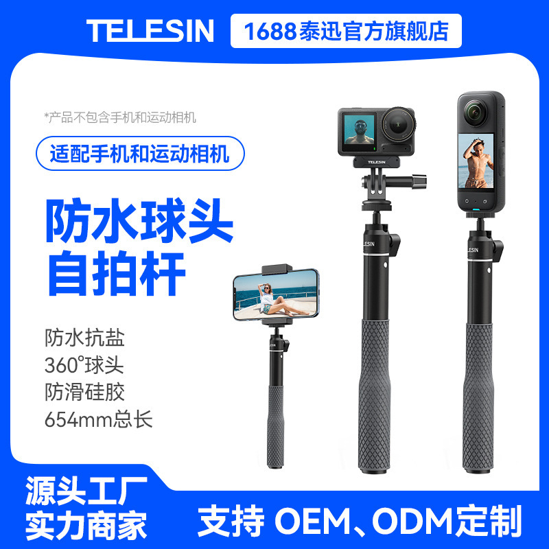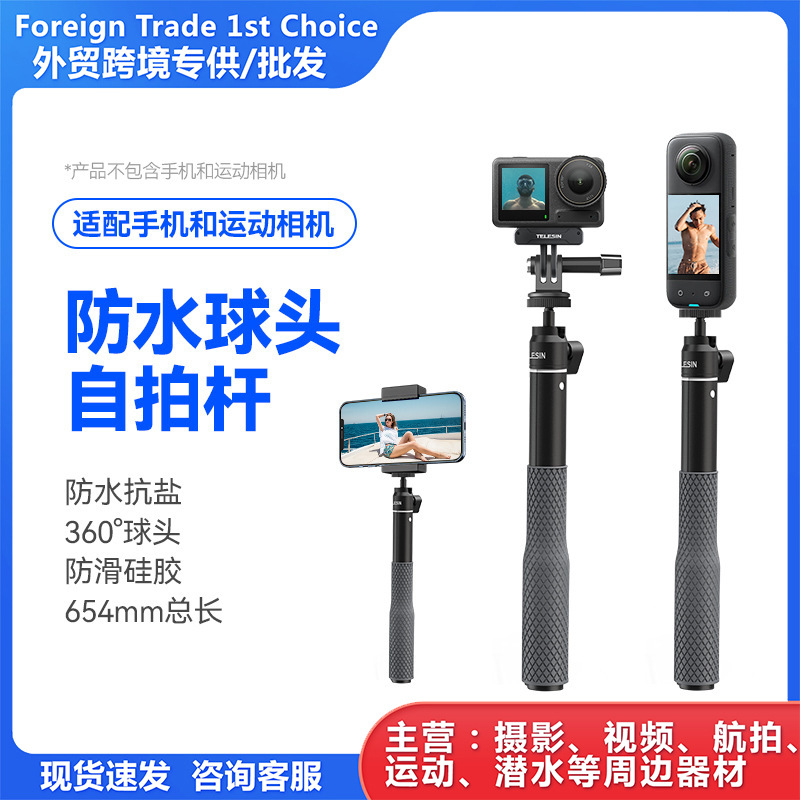 Taixun Tongkat Selfie Kepala Bola Tahan Air Gopro12 Tongkat Snorkeling Paduan Aluminium Menyelam Tongkat Selfie Dajiang Action4
