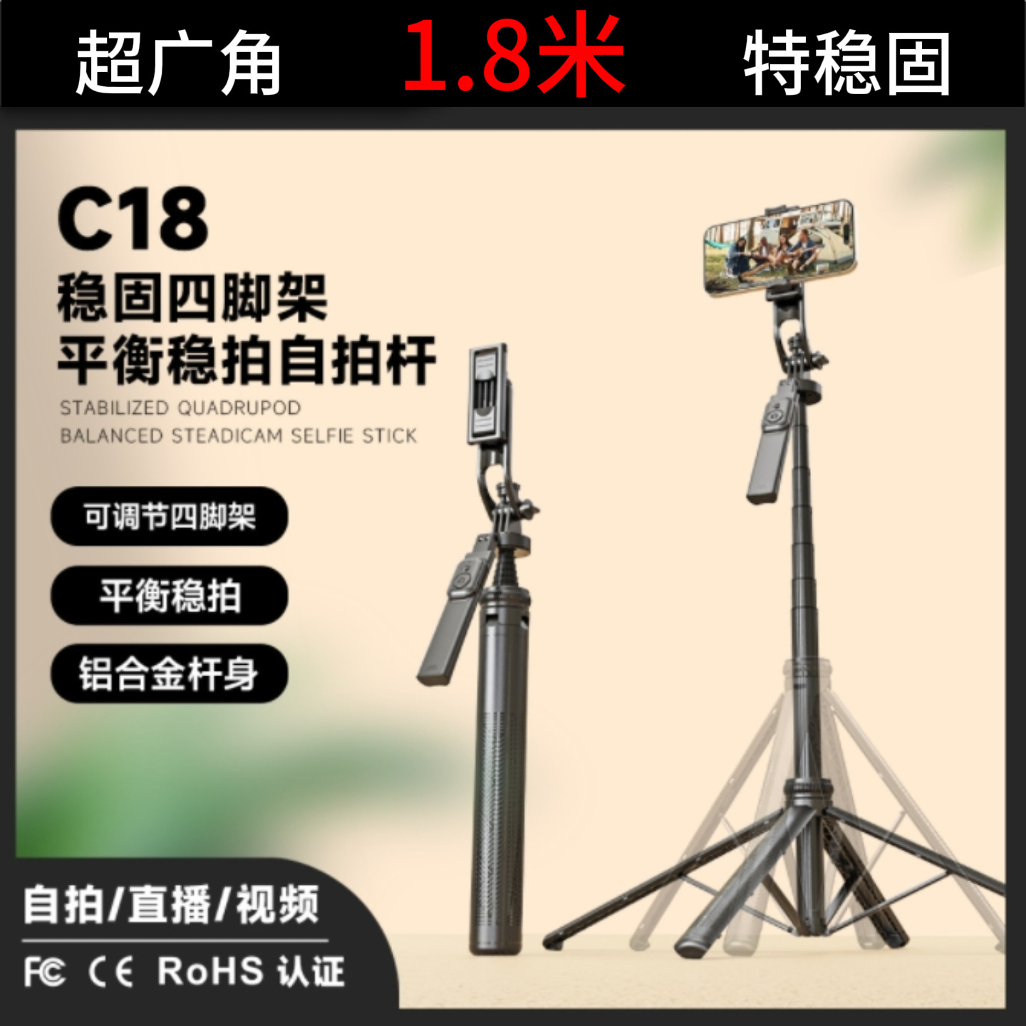 H29 Tongkat Selfie Paduan Aluminium 1,8 Meter Dating All-in-One Portable Braket Siaran Langsung Selfie Perjalanan