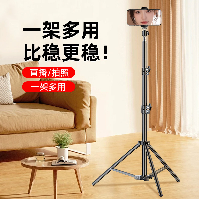Braket Siaran Langsung Ponsel Studio Foto Luar Ruangan Multifungsi Tiang Selfie Anti-goyang Tiang Tiang Berlantai 2.1 Meter