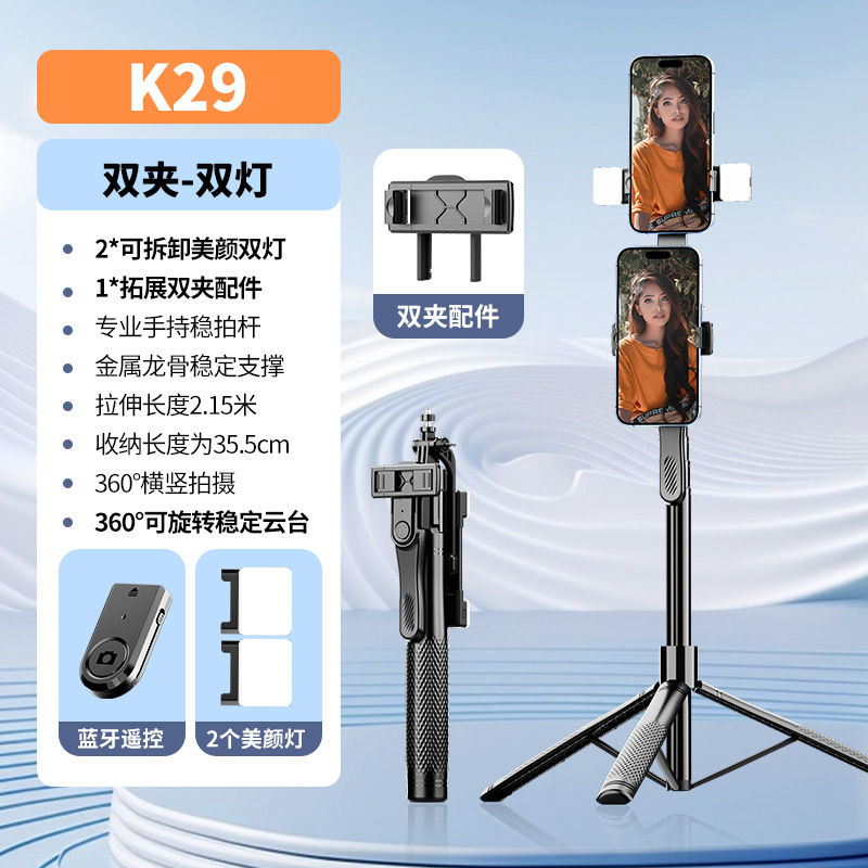 K28 tongkat selfie Bluetooth ponsel, penstabil genggam tripod pendukung langsung menembak luar ruangan baru pabrik