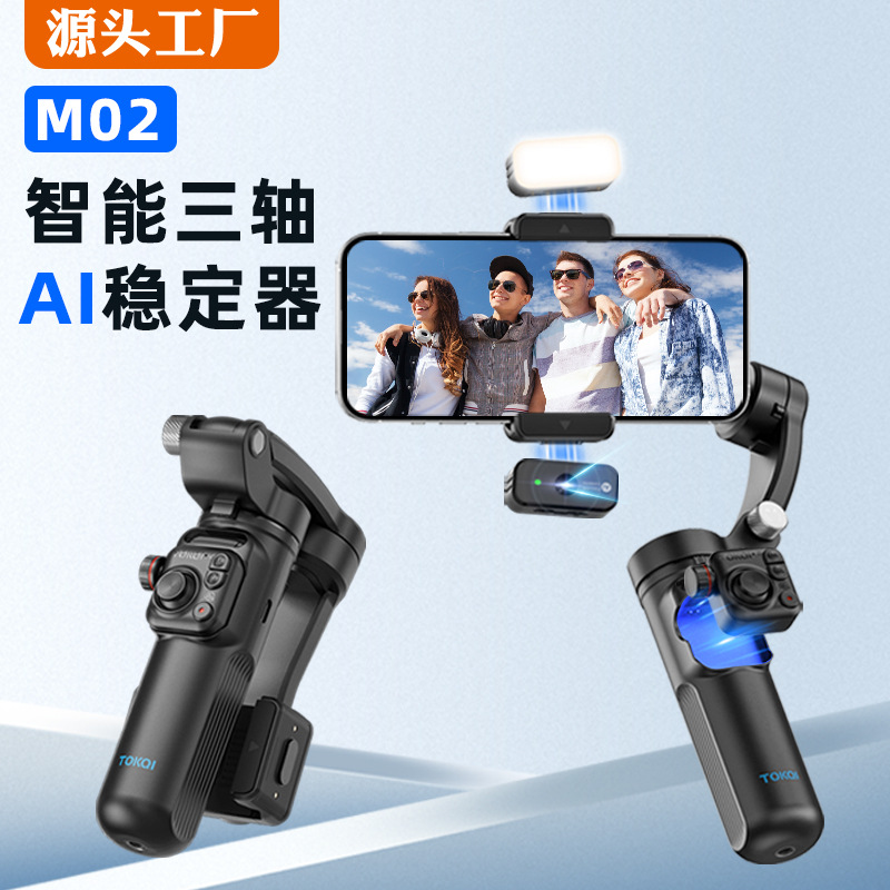 M02 Penstabil Ponsel Tiga Sumbu Anti-goyang Pegangan Genggam Gimbal AI Pelacakan Wajah Ponsel Langsung Penyangga Desktop NCC