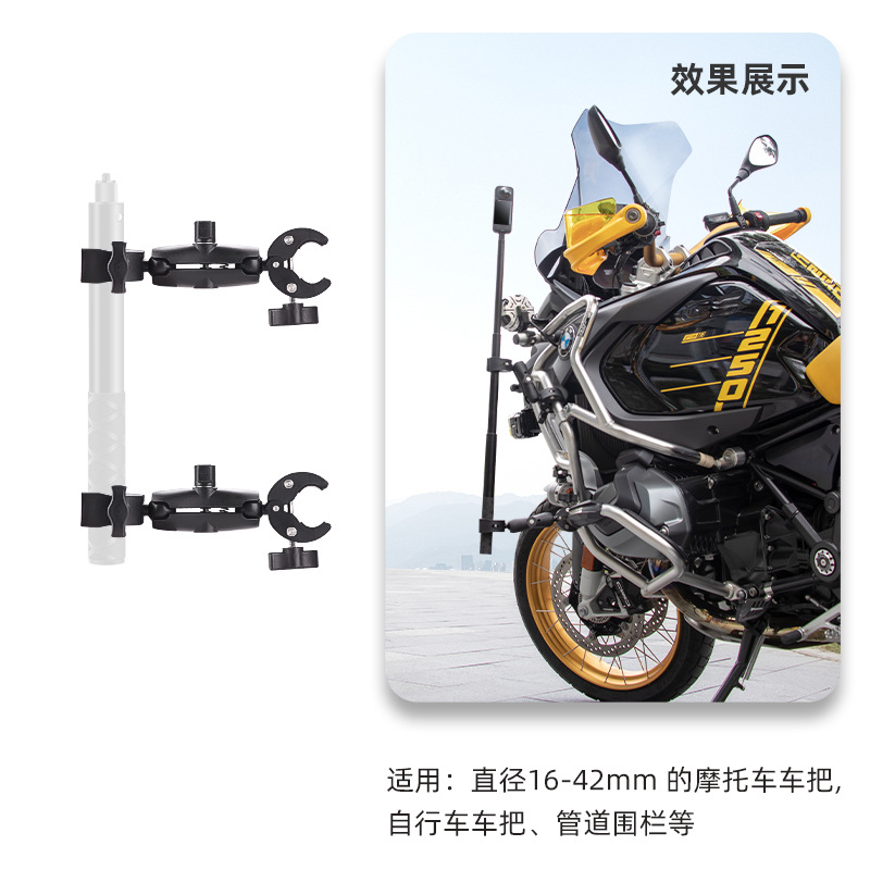 Klem tongkat selfie, paduan kuat klem kamera olahraga sepeda motor kepala ganda penjepit tetap selfie penjepit kuat