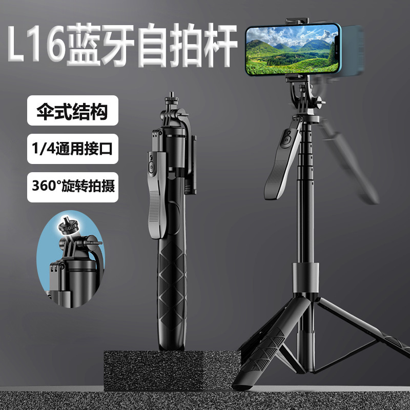 L16 Tripod teleskopik genggam kamera olahraga, tongkat swafoto Bluetooth, stabilizer genggam kamera olahraga DV fotografi 1.6m lantai