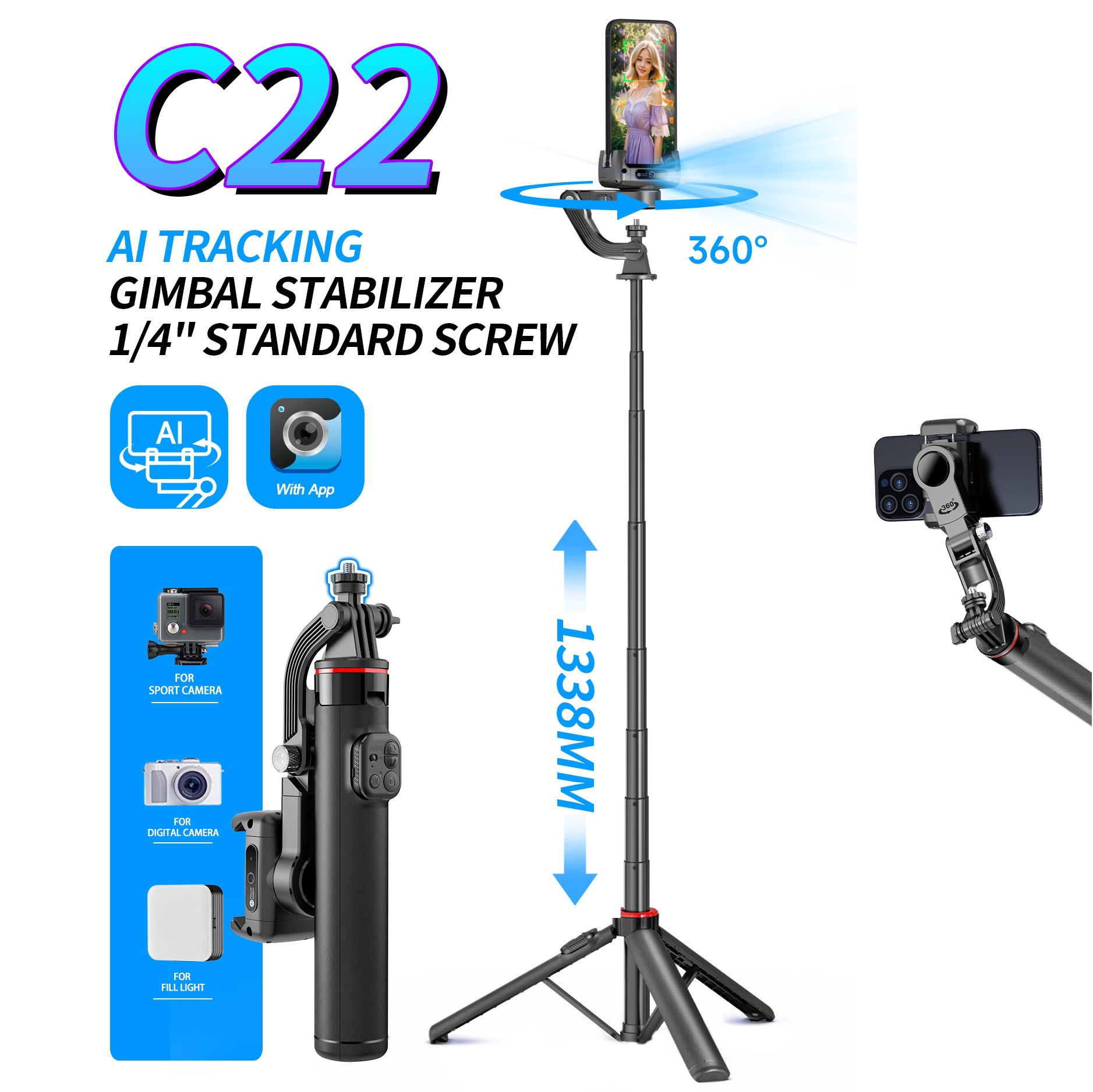 Cross-border 360 kamera cerdas, kepala artefak APP bebas perekaman video penstabil pelacakan wajah pengenalan AI langsung