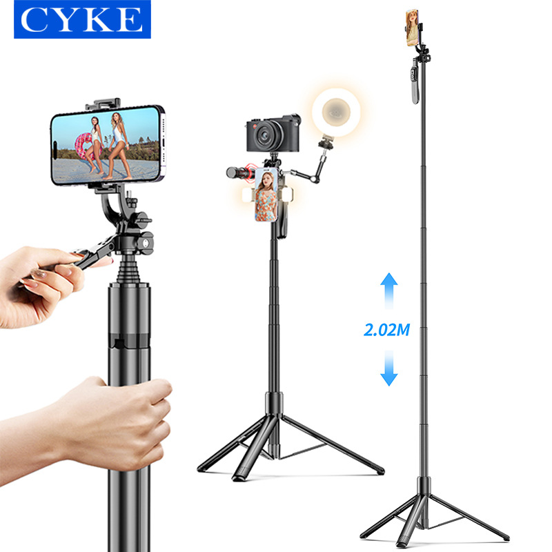 CYKE tongkat swafoto Bluetooth genggam, ekstensi 2 m lantai luar ruangan pendukung langsung pada Bluetooth, tongkat selfie penstabil fotografi genggam PTZ