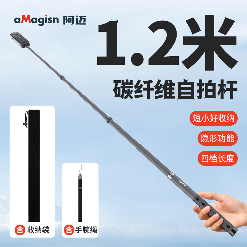 Aksesoris aMagisn Amai serat karbon 1,2 meter tongkat selfie 120cm tidak terlihat Insta360DJIGoPro