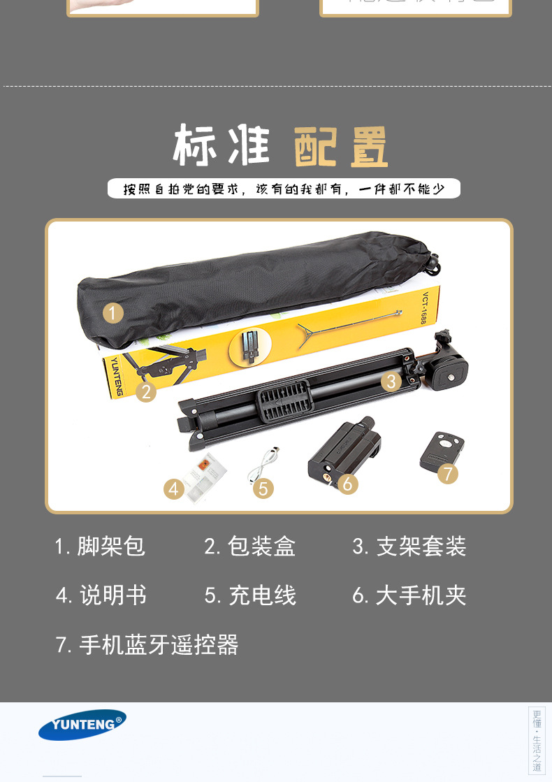 Yunteng 1688 tongkat selfie ponsel mini, tongkat tripod mini ringan perjalanan kendali jarak jauh siaran langsung braket segitiga mikro artefak Tunggal