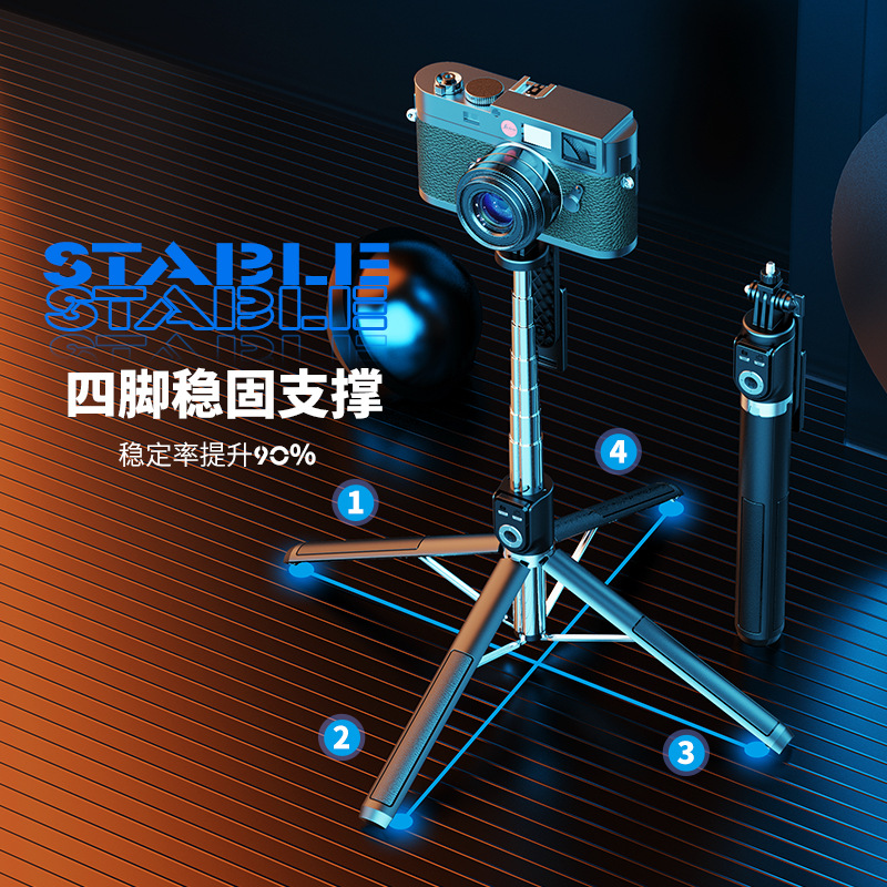 Penyangga tripod swafoto ponsel Bluetooth L08, penyangga tripod genggam kamera tunggal PTZ video live anti guncangan