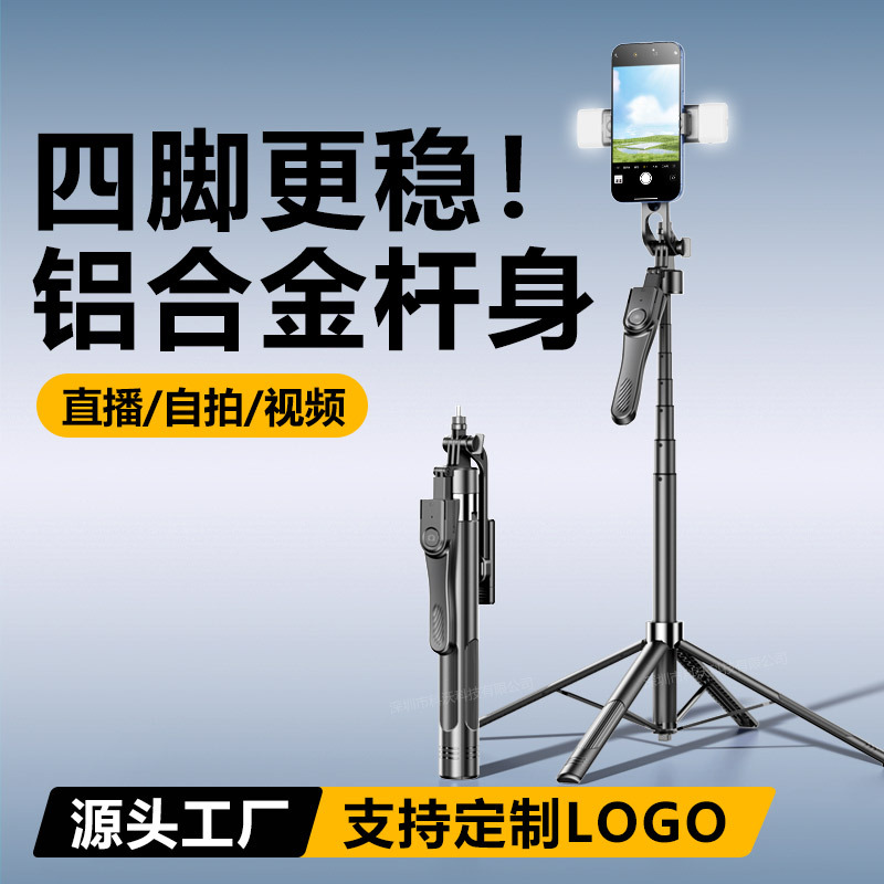 Tongkat selfie Bluetooth, tongkat selfie Bluetooth dengan tripod terintegrasi multi-fungsi PTZ selfie artefak ponsel mengisi cahaya siaran langsung braket