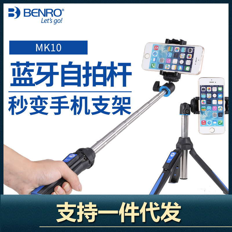 Benuo tripod tongkat swafoto MK10, tanpa kabel Bluetooth kendali jarak jauh braket siaran langsung cocok untuk Huawei Xiaomi fotografi