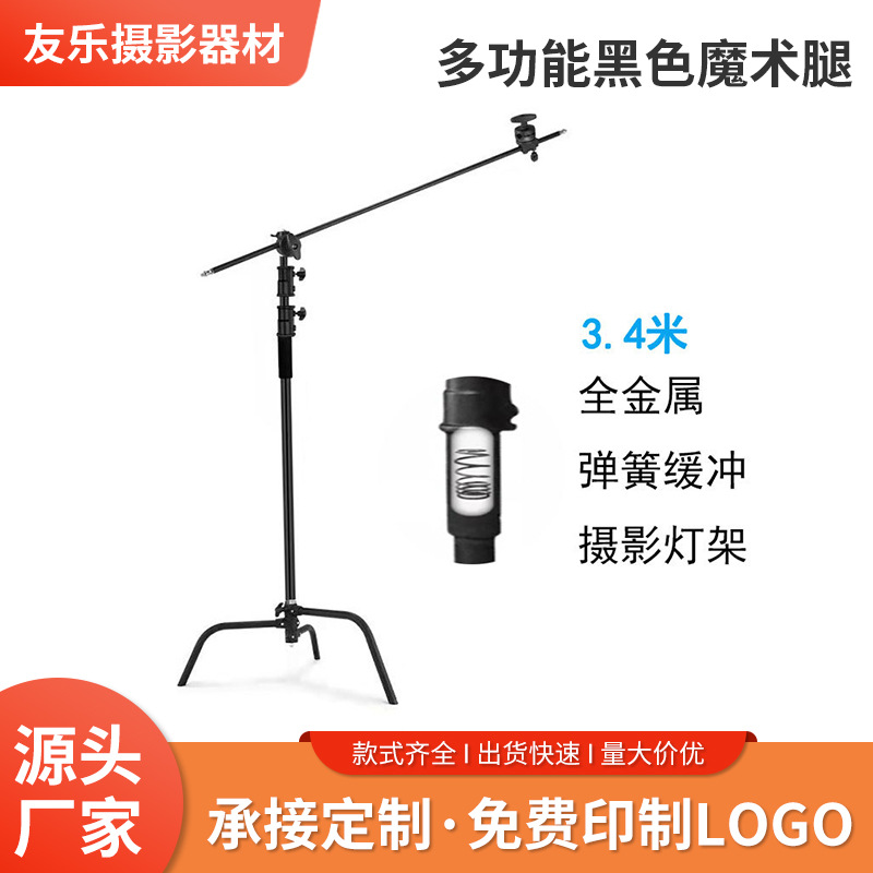 Bingkai Lampu Kaki Ajaib Warna Hitam Custom Bingkai Tipe C Bingkai Lengan Miring Fotografi Papan Bendera Batang Perancah Tripod Penebalan Braket