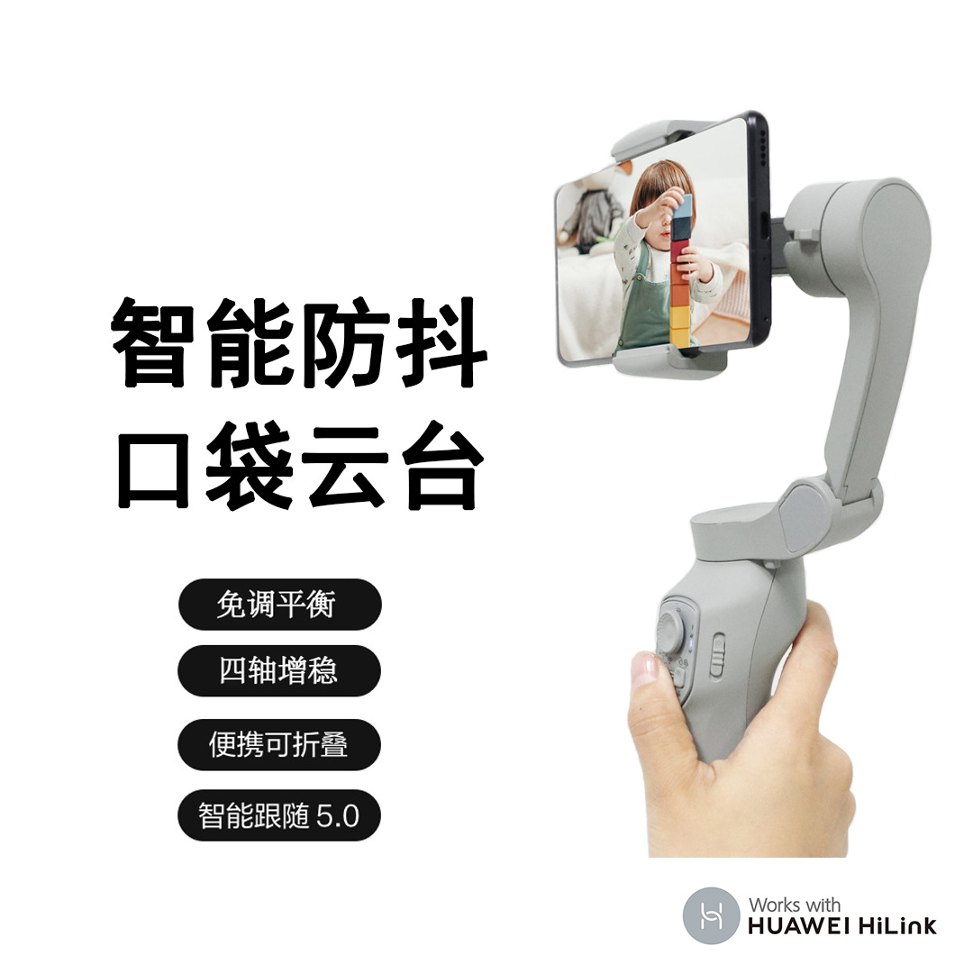 HiLink penstabil tiga sumbu genggam, penstabil wajah anti-guncangan lipat untuk ponsel dan kepala kamera