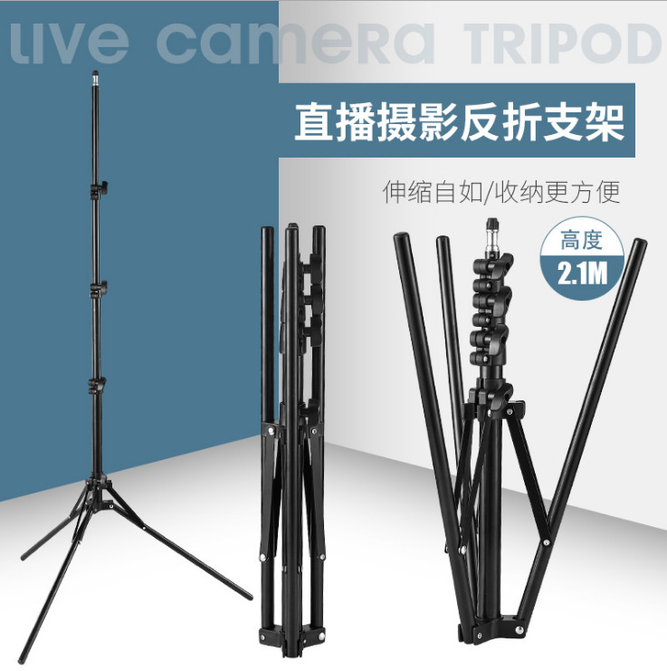 Tripod kamera untuk siaran langsung dan fotografi, tinggi 2,1 meter, dilengkapi dengan tripod lampu lipat 1,6 meter.