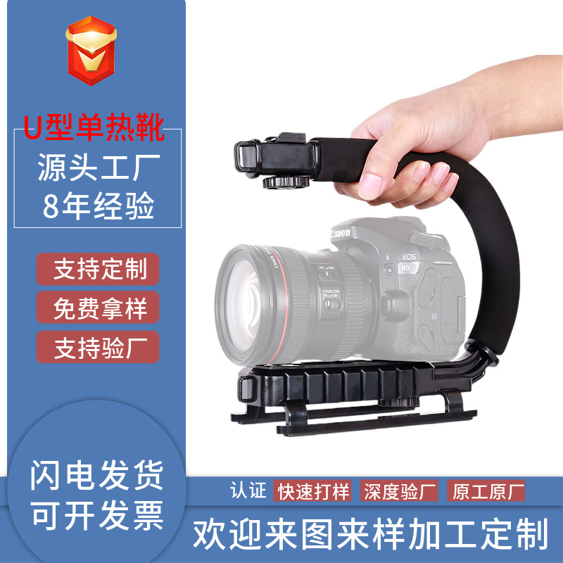 Stabilizer anti-goyang hot shoe kamera SLR, lampu flash praktis, dudukan ponsel untuk memotret, stabilizer genggam bentuk U