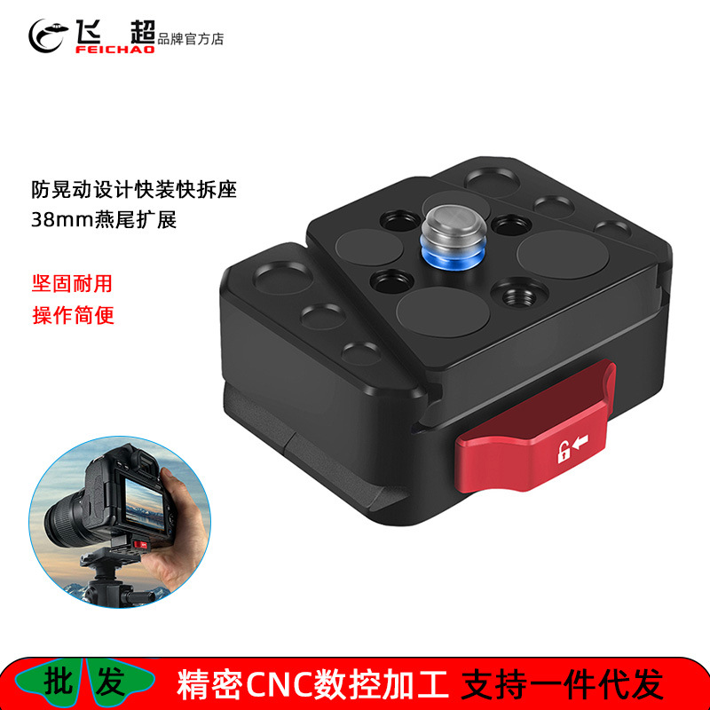 Feichao penstabil tripod fotografi kamera PTZ, dasar instalasi cepat anti-guncangan v-port ditingkatkan, pelat instalasi cepat