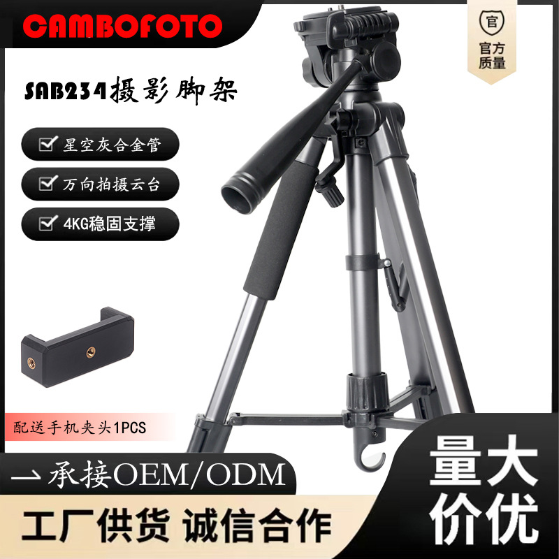 Tripod Kamera Fotografi Jiabao Star Level SAB234, Portabel untuk Luar Ruangan, Lampu Pancing Malam, Stand untuk Live Streaming Ponsel