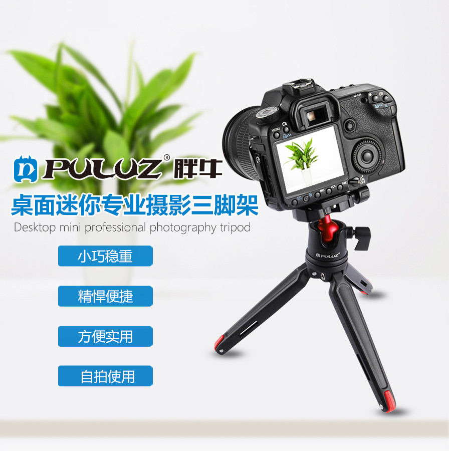 PULUZ tripod tripod fotografi mini, tripod lemak logam sapi mini, perlengkapan fotografi tinggi dapat disesuaikan 11-21cm