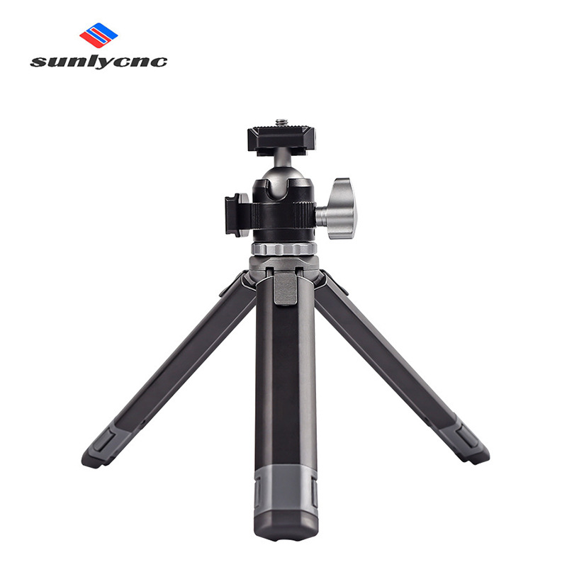 Tripod PTZ dua bagian teleskopik logam, braket ponsel mini kamera tunggal desktop sepatu dingin