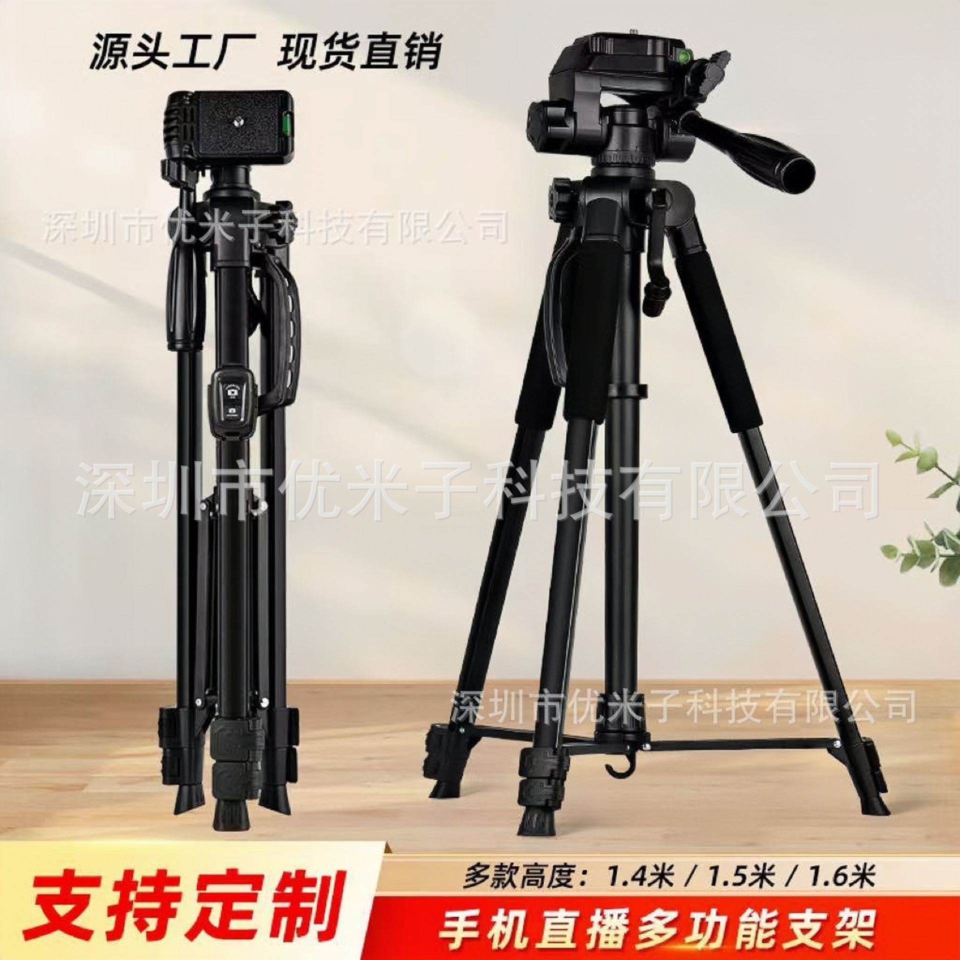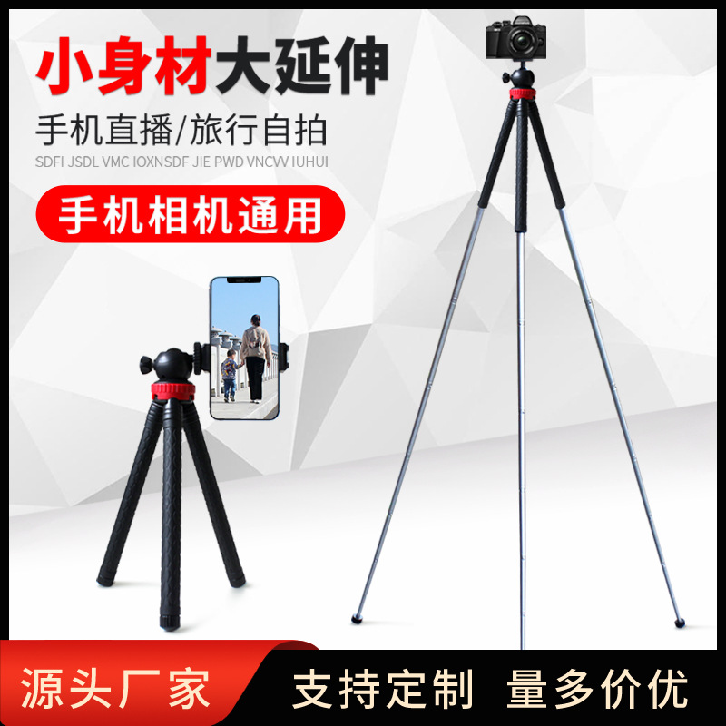 Braket segitiga teleskopik pabrik, tripod lantai desktop baja tahan karat delapan bagian, braket fotografi selfie langsung selebriti Internet