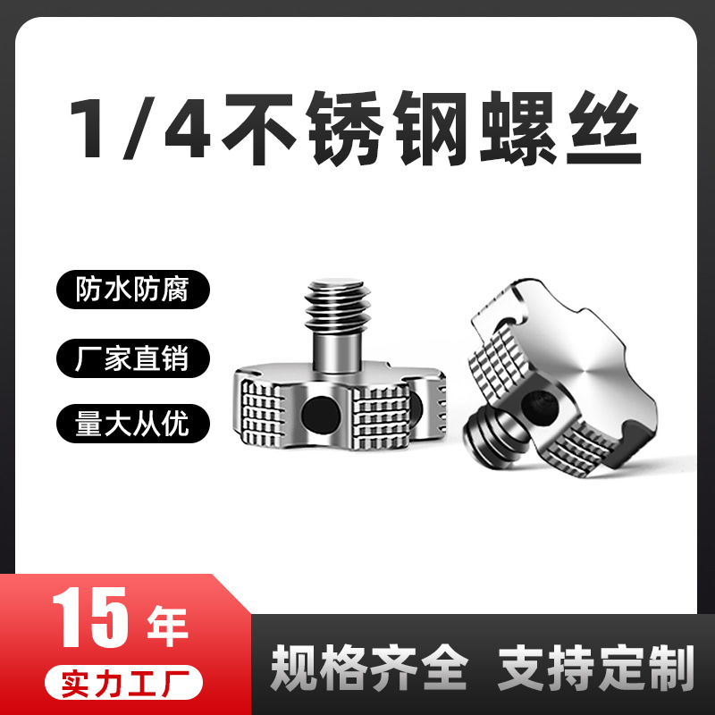 Sekrup kamera SLR fotografi 1/4 Inggris, sekrup pelat pelepasan cepat bahan baja tahan karat dengan lubang samping, sekrup tangan penguatan