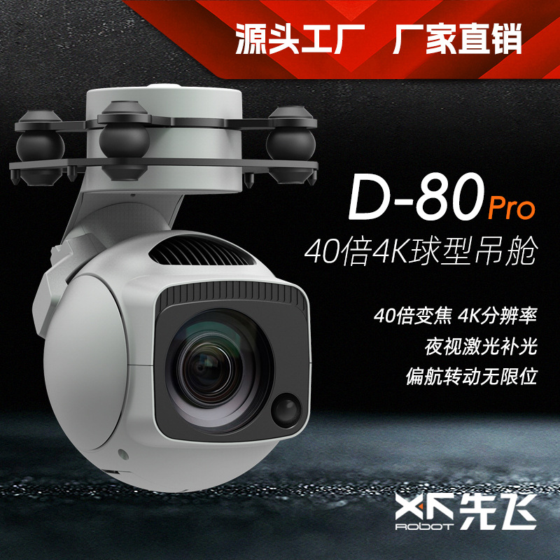First fly D-80Pro40 kali pod bola 4K, fotografi aerial PTZ 360 derajat UAV fotolistrik pod