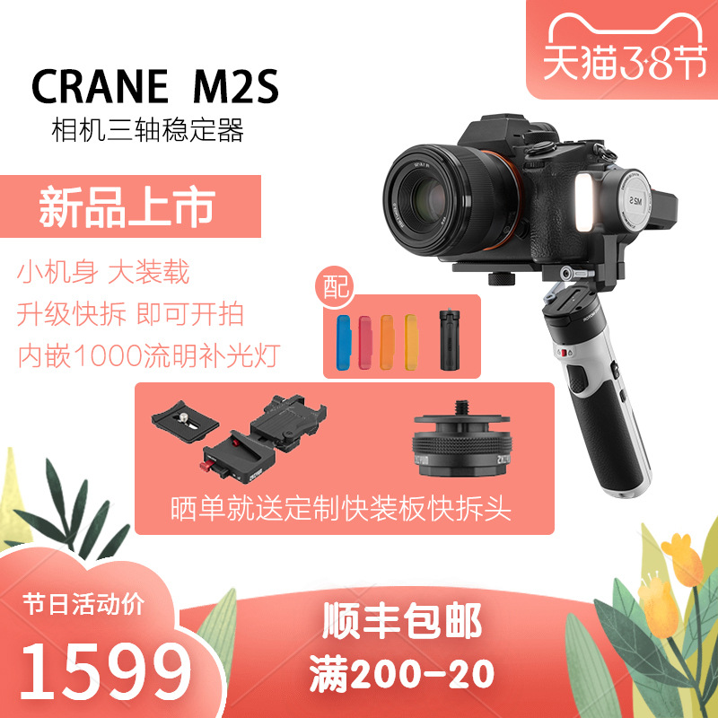 Zhiyun Yunhe M2S kamera stabilizer tunggal, tiga sumbu bingkai penuh mikro ponsel anti-guncangan genggam PTZ