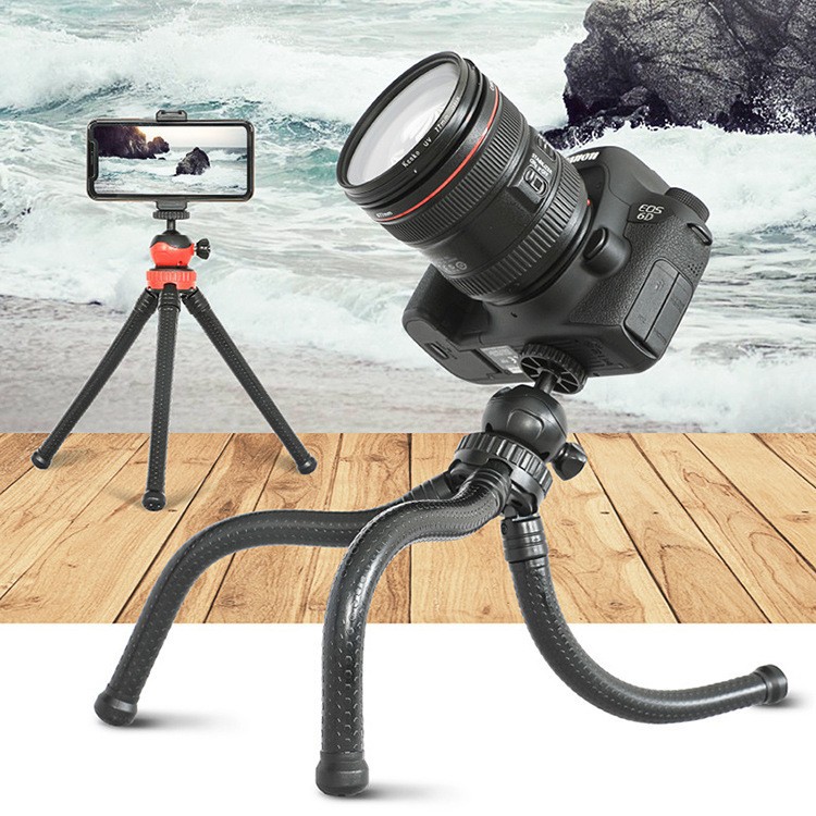 Tripod berlian hitam 360 derajat berputar mengunci logam PTZ kepala bola desktop kaki lembut gurita braket ponsel