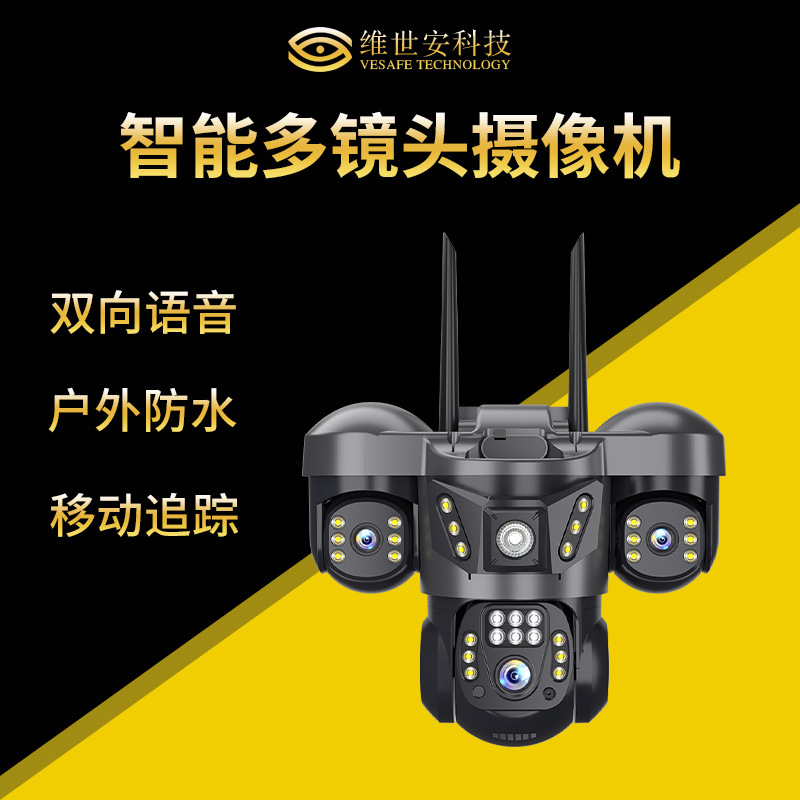 Kamera Pemantau Luar Ruangan 4G Monitor WiFi Kamera Tiga Lensa Kamera Pelacakan Otomatis