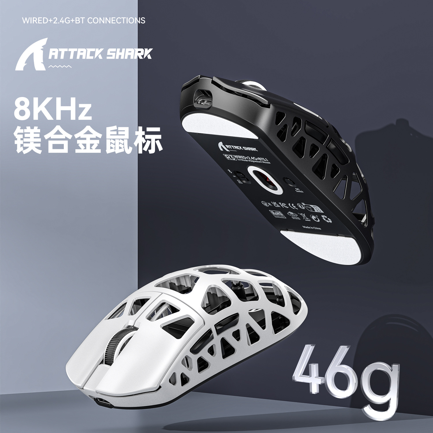 Mouse Serbu Hiu R3 Paduan Magnesium Ringan PAW3395 Tiga Mode Bluetooth Permainan Nirkabel 4K8K Mouse E-sports