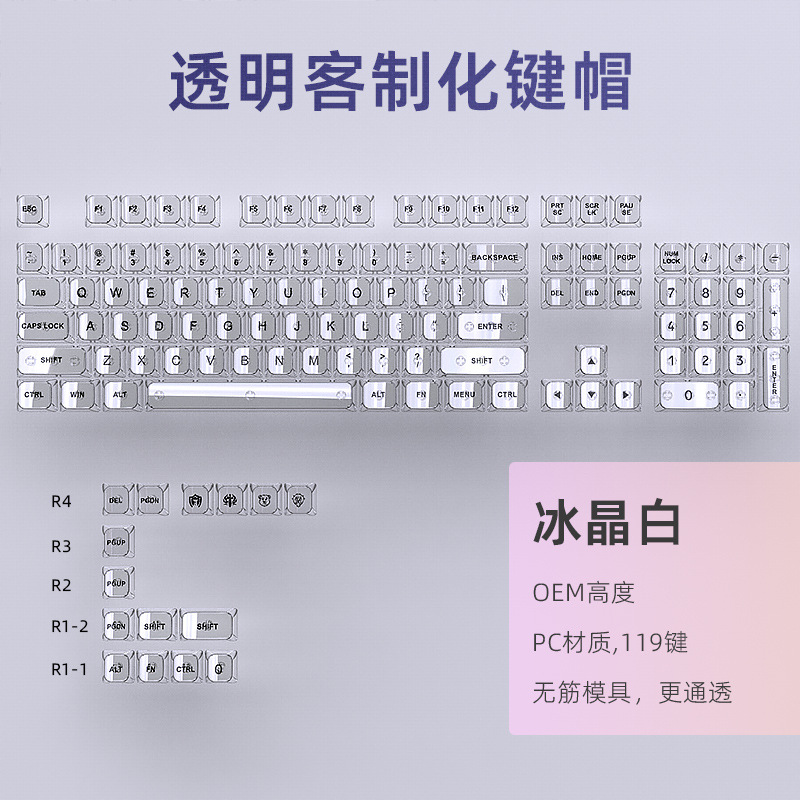 Spot Border Grosir Ice Crystal Keyboard Mekanik Putih PC Tidak Semua Transparan 0EM Tinggi 119 Kunci Kecil Set Lengkap