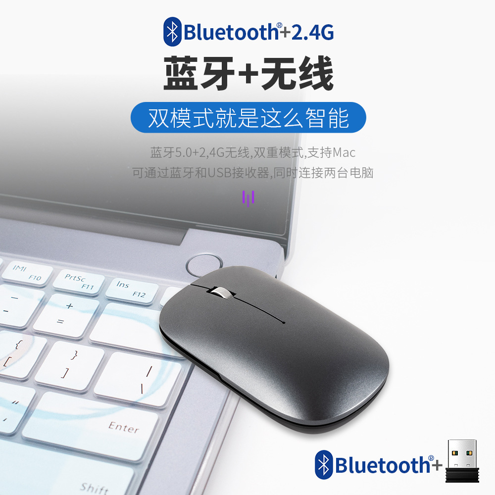 Mouse Nirkabel Isi Ulang Super Tipis untuk Kantor Mouse Bluetooth Mode Ganda untuk Ponsel Komputer Desktop Tablet Mouse Diam Grosir