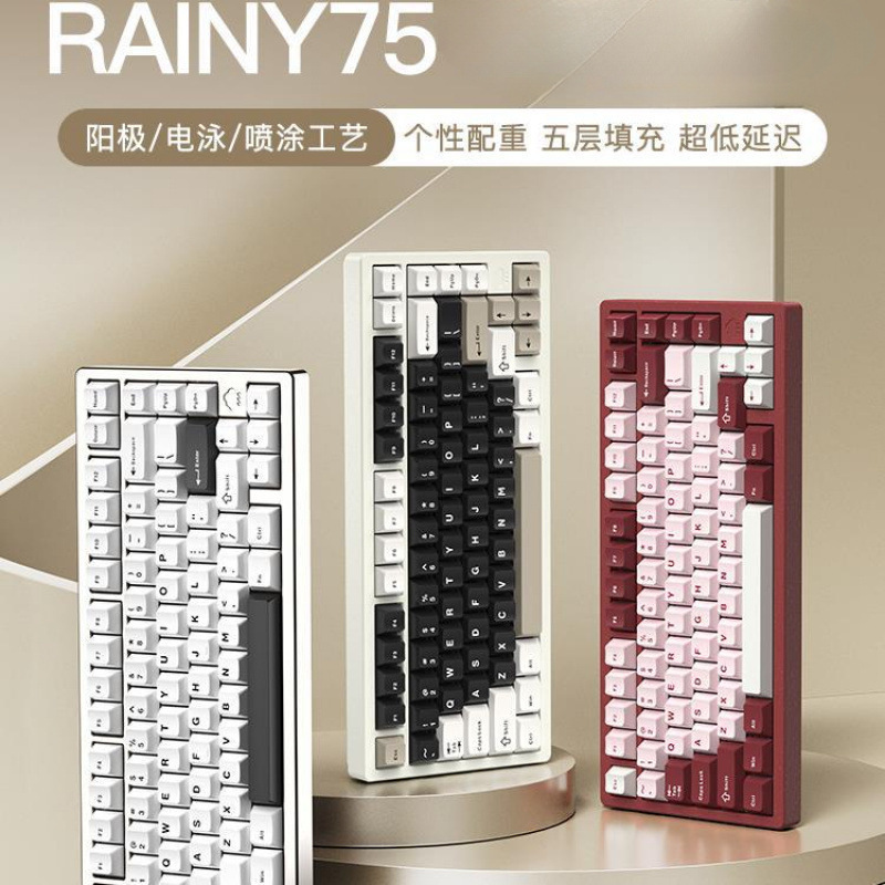 RAINY75 keyboard mekanik aluminium yang disesuaikan komputer nirkabel Bluetooth tiga mode permainan E-sports Huihang