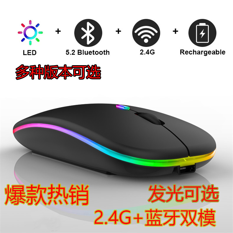 Mouse nirkabel isi daya dari pabrik, Mouse game komputer sunyi Bluetooth mode ganda bercahaya 2.4g tanpa suara lintas batas