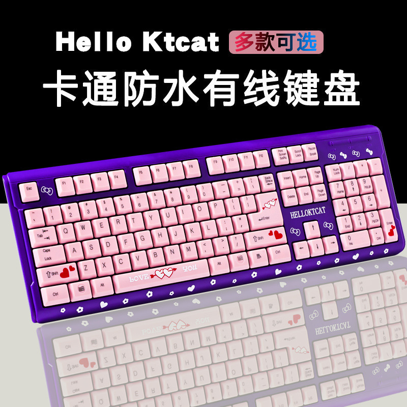 Keyboard berkabel, merah muda, berkabel, kartun kucing, merah muda, kantor, laptop, rumah, keyboard berkabel USB