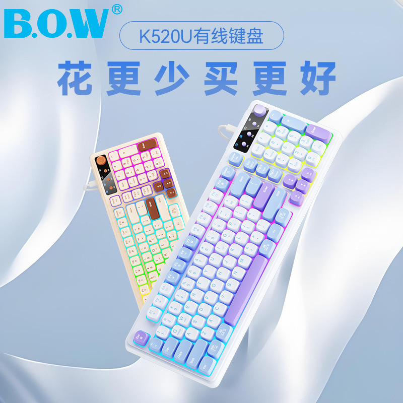 BOW K520U Keyboard Kabel Laptop Komputer Desktop Universal Wanita Mengetik RGB