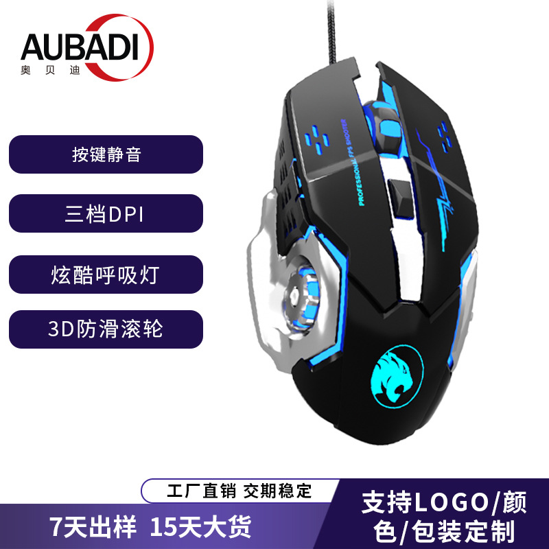 Mouse game berkabel bercahaya warna-warni USB e-sports Mouse kantor senyap besi berat dalam stok grosir