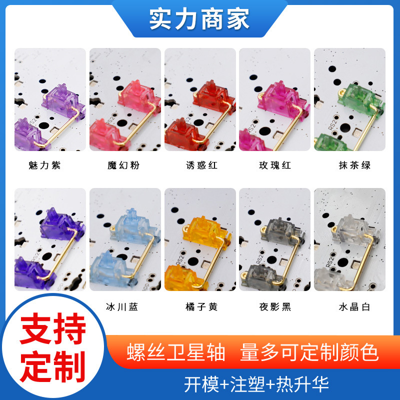 Poros satelit sekrup berlapis emas, poros satelit PCB transparan merah muda ungu merah hijau biru kuning hitam 6.25U disesuaikan 7U