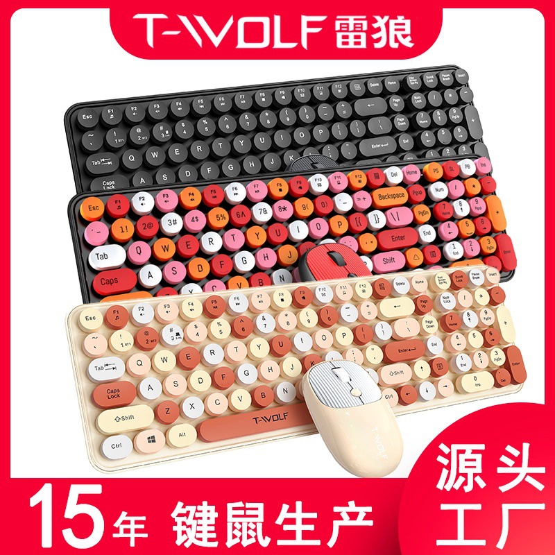 T-WOLF Lei Lang TF350 mouse nirkabel dan keyboard sesuai dengan dot punk warna gadis bisnis kantor retro