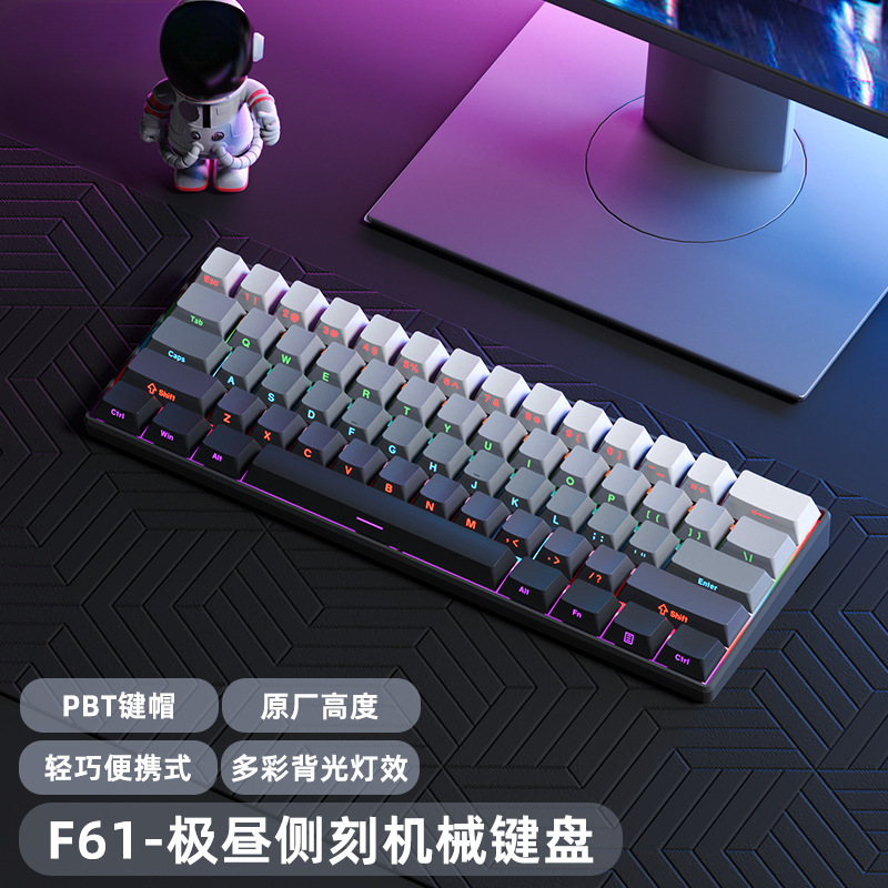 F61 Papan Ketik Mekanik Lampu Belakang Kabel Portabel Keyboard Kecil Komputer Permainan Kantor 61 Tombol Teh Sumbu Merah