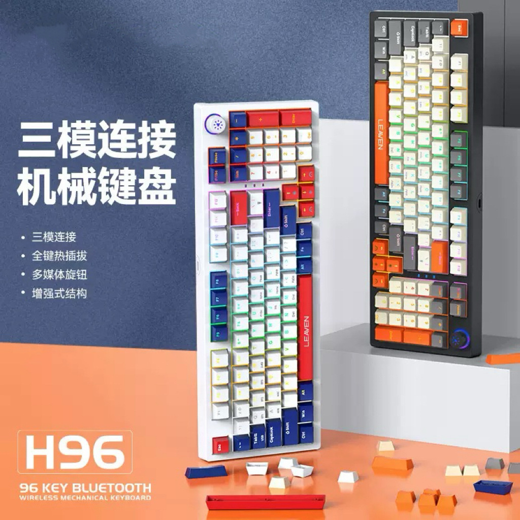96 tombol tiga mode keyboard mekanik tombol tombol wireless bluetooth game game e-sports Rusia RGB yang disesuaikan