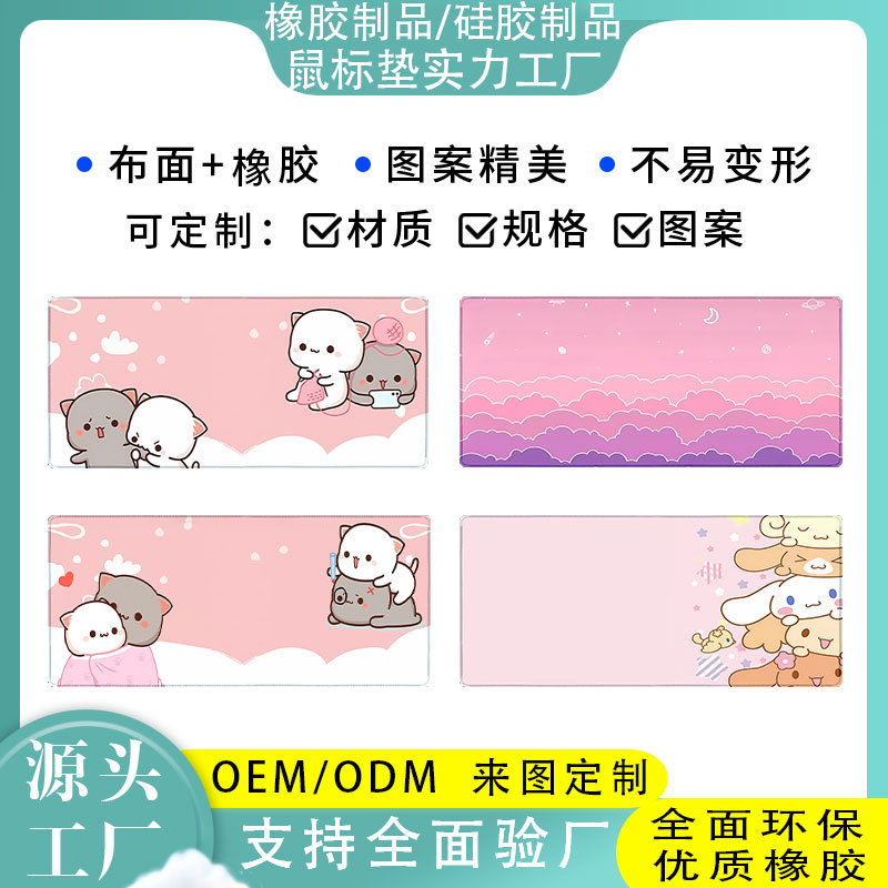 Bantalan mouse kartun lucu, alas meja ukuran besar, pinggiran kunci anti selip, bantalan keyboard gambar teknologi cetak transfer termal