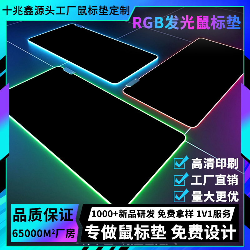 Alas mouse bercahaya RGB, alas mouse lari warna-warni hitam penuh warna, bercahaya, anti selip, dapat dibuat dengan gambar