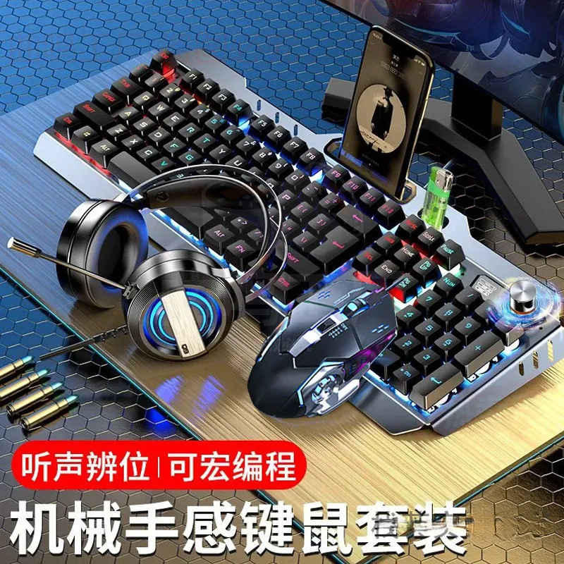 Set Keyboard dan Mouse Senstif Mekanis Alas Komputer Khusus untuk Permainan E-sports Set 3-piece Keyboard dan Mouse Nirkabel Pejalan Kaki