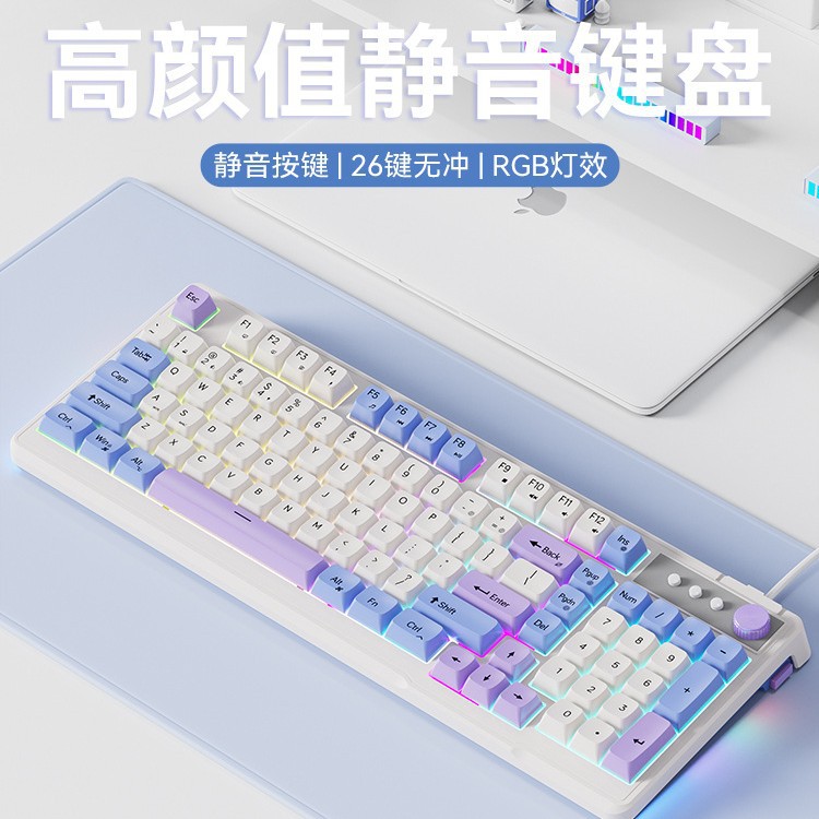 Nilai tinggi 98 set keyboard dan mouse untuk anak perempuan kantor permainan elektronik mesin keyboard kabel bisu pabrik kustom