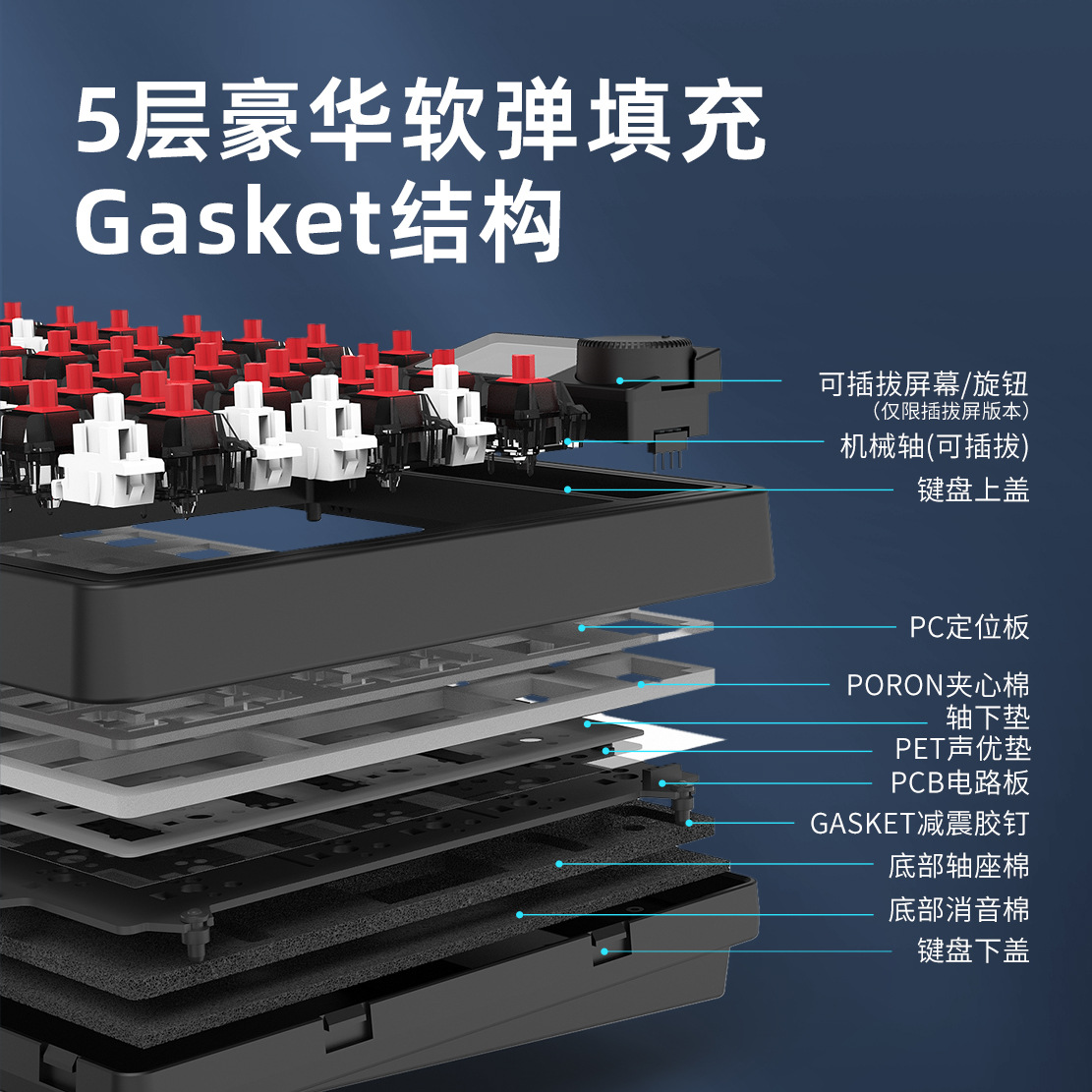 Front walker X87 keyboard mekanik yang disesuaikan struktur gasket