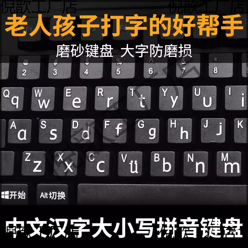 Keyboard kabel Pinyin komputer huruf kecil untuk orang tua belajar mengetik keyboard Cina Cina