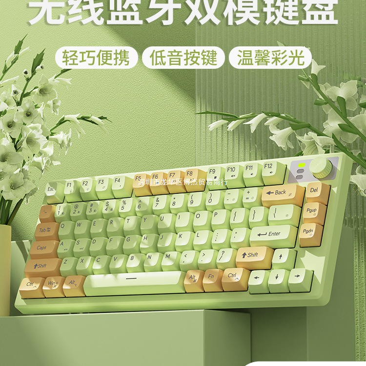 Keyboard mekanik tiga mode Bluetooth sisi nirkabel berukir diam poros persik yang disesuaikan suara mahjong