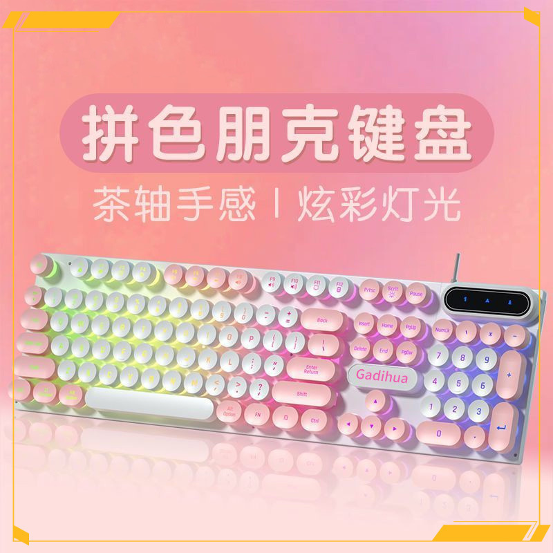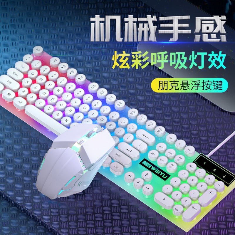 Pelangi Cahaya Keheningan Retro Punk Mekanik Senstif Permainan Kantor Set Keyboard dan Mouse Bersaing Komputer Set Tiga Potong