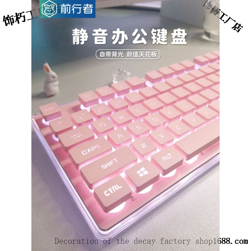 Keyboard bisu pejalan kaki depan kantor perempuan warna merah muda nilai wajah tinggi komputer nirkabel mesin mouse