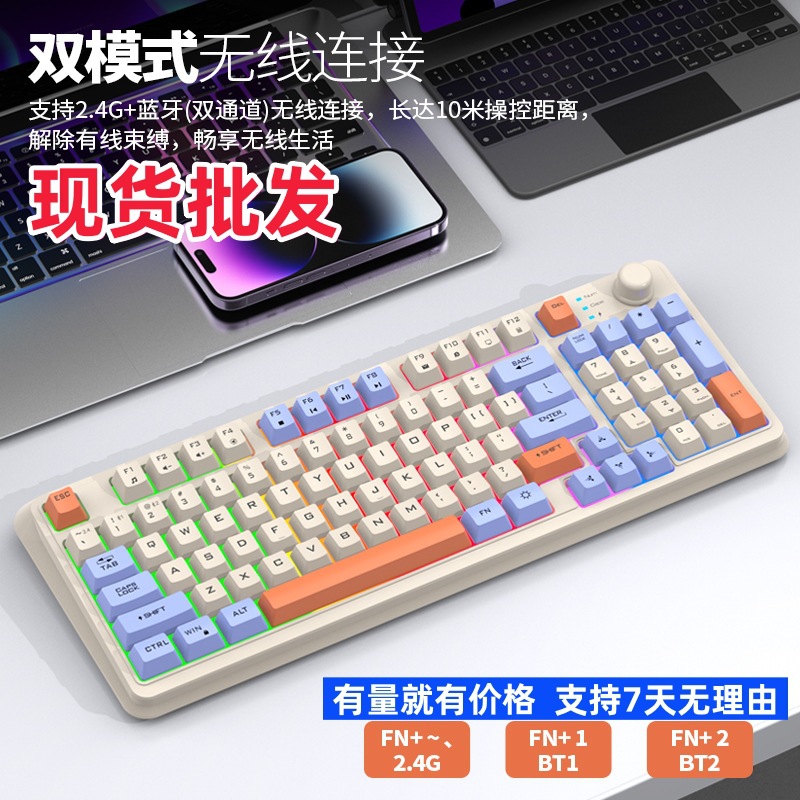 Model Baru Xuan Yinhu K94 Tombol Putar Warna Nirkabel Keyboard Komputer Laptop Desktop Bluetooth Ganda Nirkabel